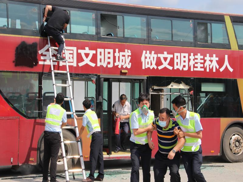 “救命啊,着火了,快来救救我!”6月18日,桂林公交平山场站万福车场一辆满载旅客的公交车浓烟滔滔,“火势”正旺,旅客们在驾驶员的指挥下,迅速、有序撤离“火灾”现场……这是桂林公交2021年突发事件...