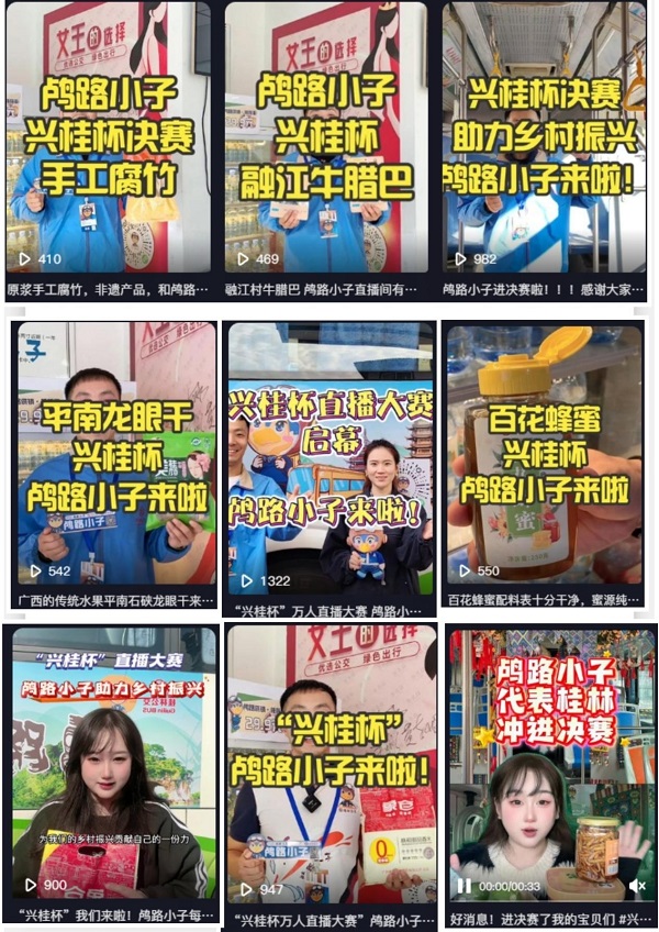 桂林BG大游集团鸬路小子团队积极响应运动招呼报名参赛,与来自广西各地的优秀团队齐聚一堂,通过直播展示,助力广西特色农产品推广。自11月中旬参赛以来,鸬路小子团队精心策划,将广西手工腐竹、牛腊巴、龙眼干等特色产品以生动有趣的视频、直播方法进行讲解宣传,不但赢得了宽大观众的喜爱,让更多网友认识了鸬路小子团队,同时也为广西乡村振兴事业的生长注入了新活力。截至目前,鸬路小子团队利用抖音直播号共宣布参赛短视频43条,播放量达8.3万,直播累计寓目人数过万人。