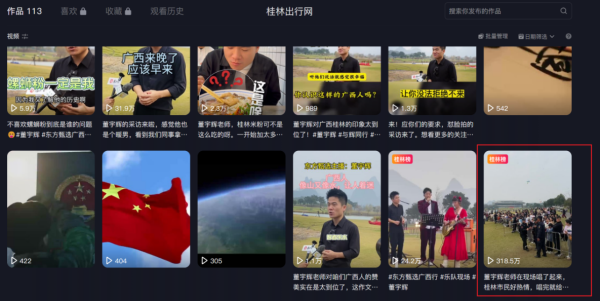 为更好迎合新媒体生长形势,为宽大市民及粉丝提供最新、最快、最准确信息,近期桂林出行网聚焦微信民众号、抖音、微信视频号、小红书等新媒体平台,积极开展原创短视频创作。其中,桂林出行网受邀加入“东方甄选广西行”运动短视频,在抖音平台单视频播放量凌驾300万,彰显出桂林出行网在自媒体领域的市场潜力。