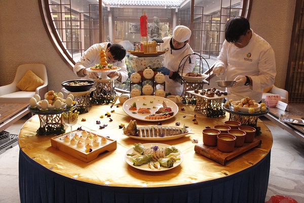 È«ÓãÄð¡¢±«ÓãÄð¡¢Ëñ×ÓÄð¡¢Ñ¿²ËÄð¡¢Ñò¶Ç¾úÄð¡¡ÍƹãչʾÔ˶¯ÖУ¬ÎµÂÄ·¾ÆµêÍŶÓÓë¹ðÁÖÂÃÓÎѧԺÍŶÓÅäºÏÖÆ×÷µÄ¡°Æ½ÀÖÊ®°ËÄðÑçϯ¡±£¬²ËÆ·ÔìÐ;«ÃÀ¡¢É«Ïãζ¾ãÈ«£¬Ò»ÁÁÏà¾Í»ñµÃÁËÏÖ³¡ÃÀʳר¼ÒÃǵÄÒ»ÖÂºÃÆÀ¡£
