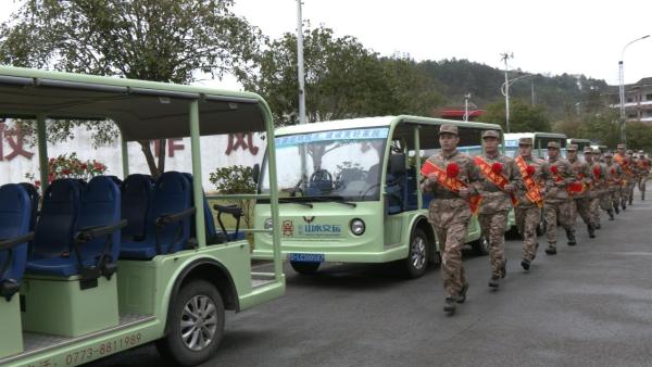 日前,5辆搭载“子弟兵”的新能源旅行车从阳朔县民兵军事训练基地出发,沿阳朔街道进行游行欢送运动。此次欢送运动中,阳朔山水公司积极加入并担负接驳任务,为即将踏上军旅生涯的新兵们送上最真挚的祝福。