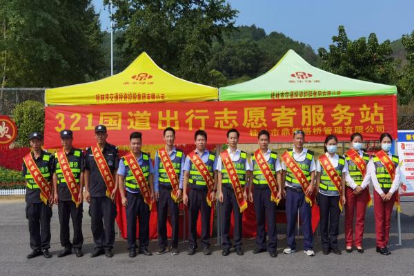 为推进志愿效劳常态化建设,鼎捷路桥公司以新时代文明实践站为依托积极组织运动,组成“321国道出行志愿者效劳站”,在雁山收费站广场为过路司乘人员提供志愿效劳。