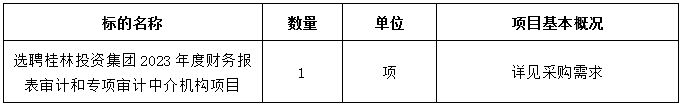 1.项目名称:选聘桂林BG大游集团2023年度财务报表审计和专项审计中介机构项目