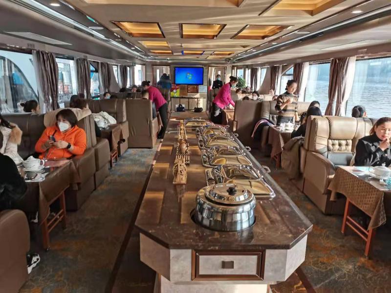 为四星游船开启复航,鼎翔旅游做好了疫情防控、运营宁静等各项准备事情,各岗位事情人员紧锣密鼓进行宁静检查、物资准备、防疫消杀,稳慎推进游船复航。复航当天,鼎顺1号四星游船迎来70位游客,高端舒适的情况、优质周到的效劳获得了游客们一致好评。