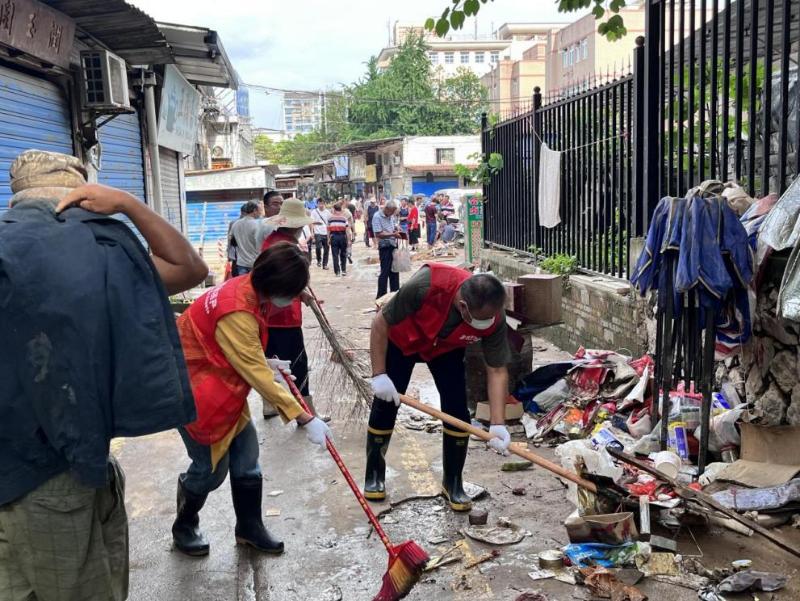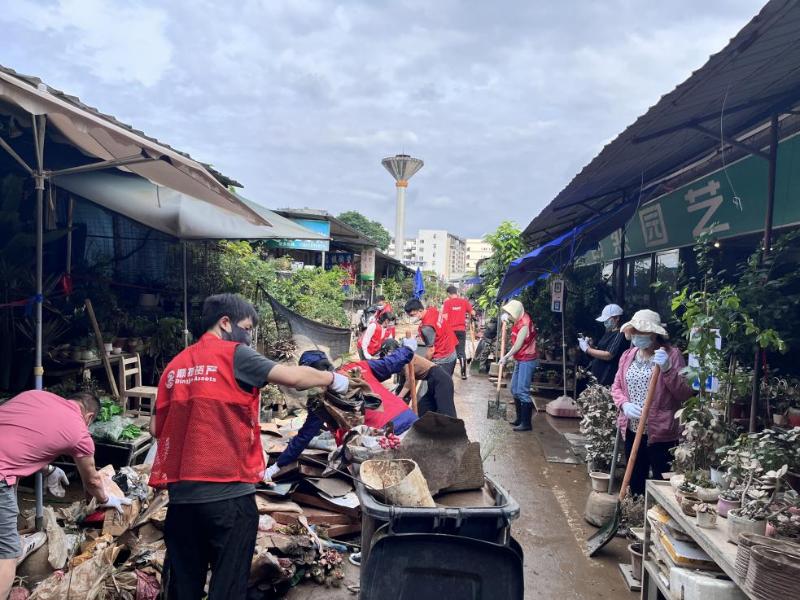 6月22日至23日两天,桂林市鼎捷资产治理集团有限公司组织公司党员、职工70余人,到花鸟市场开展灾后重建志愿效劳事情,资助花鸟市场尽快恢复正常经营。