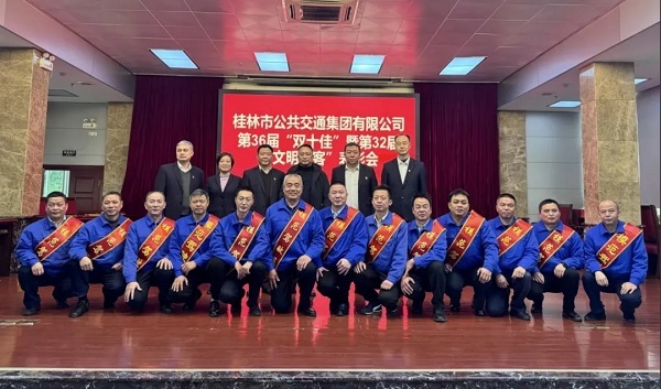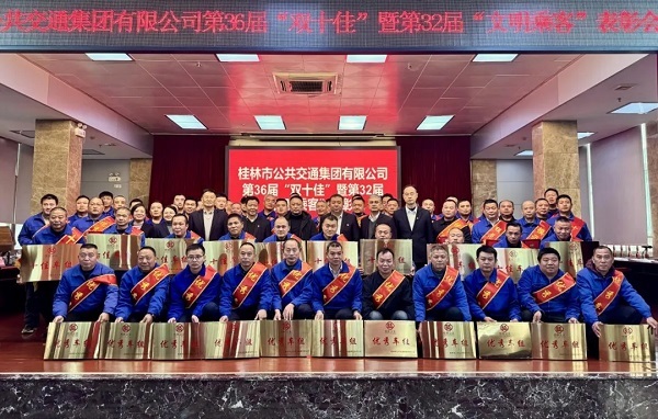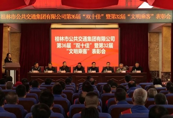 12 月 26 日,桂林BG大游集团桂林公交第36届“双十佳”暨第32届“文明旅客”表扬大会在桂林公交铁西车场举行。市总工会、市文明办、市国资委、市交通运输局、桂林BG大游集团、市融媒体中心等单位领导出席表扬运动。